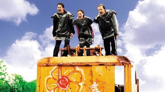 If you threw him out a window he'd fall into a flatbed truck full of pillows, and the feathers would fly up around him against the sun and sky, and he'd cock his head to the side and open his mouth in wonder at the beautiful sight of feathers and sun and sky, and he'd have an epiphany that life is a beautiful and wonderful thing after all, even what with all the pushing-guys-out-of-windows going on, as the Shins swell on the soundtrack. - magnus